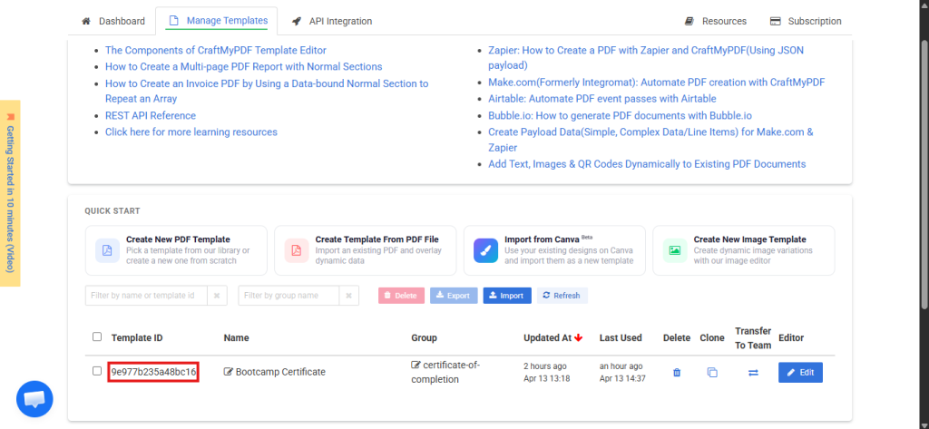 Step 1: Setting Up Your Certificate Template on CraftMyPDF