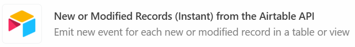 After choosing CraftMyPDF, you will be required to set up a trigger. The trigger will monitor New or Modified Records from the Airtable base. For this article, we will be using the “New or Modified Records (Instant) from the Airtable API